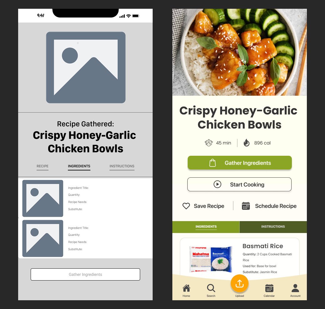 A mobile experience designed to reduce friction in meal planning, ingredient review, and grocery prep.