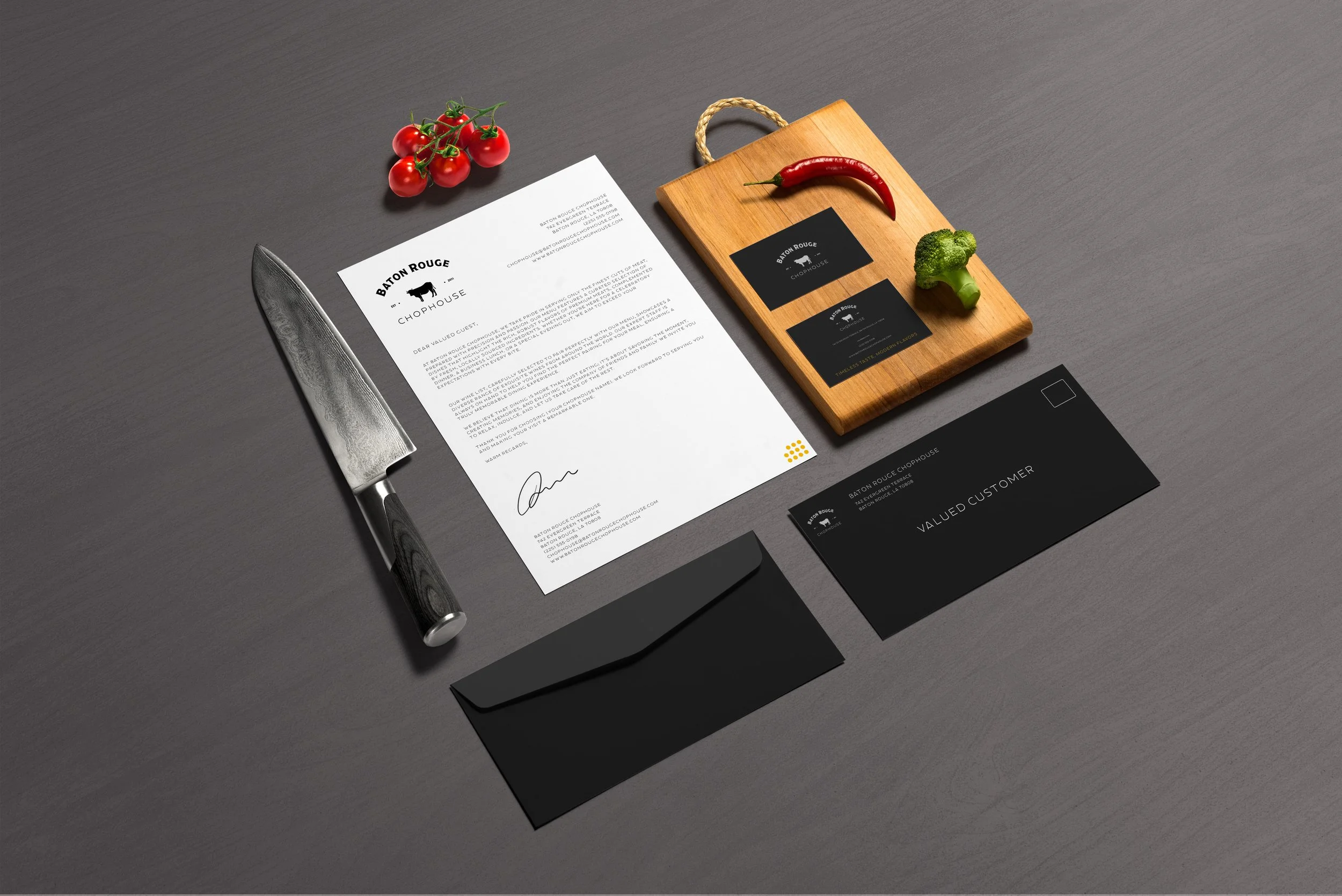 Baton Rouge Chophouse is a fictional upscale steakhouse concept set in Baton Rouge, Louisiana. The project explores a dark, refined brand identity rooted in classic steakhouse tradition. Designed to communicate quality, and a premium dining experience without feeling dated or over designed.