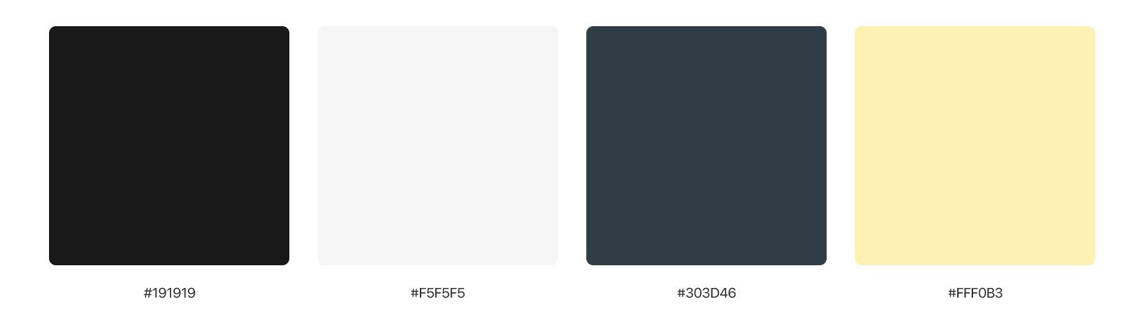 A restrained black-and-white palette anchors the brand, supported by charcoal tones and a subtle accent used sparingly for emphasis.